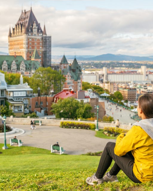 Skyline view of Old Quebec City with iconic Chateau Frontenac and Dufferin Terrace against St. Lawrence river in autumn sunny day, a national historic site of Canada - Shutterstock