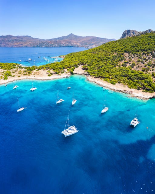 The beautiful, blue and turquoise sea of Moni at Aegina island - Shutterstock