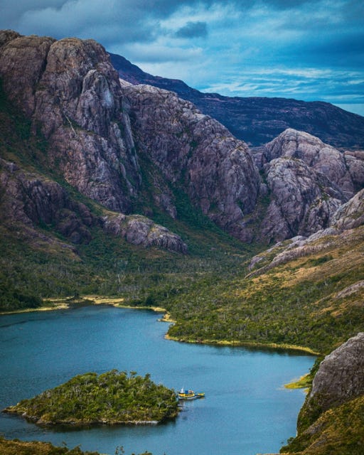 Dramatic Mountain Landscape and Pristine Lake in Kawésqar National Park, Chilean Patagonia